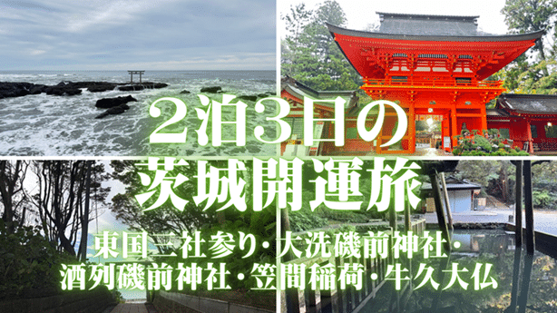 今回の旅は、牛久大仏→東国三社参り→大洗磯前神社→酒列磯前神社→笠間稲荷という、まさに “開運の大動脈” を巡る2泊3日の旅。