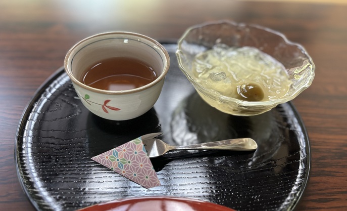 8月にいただいたのは梅味の葛切り風そうめん(ほうじ茶付き)300円※。爽やかな梅味で美味しかったです。