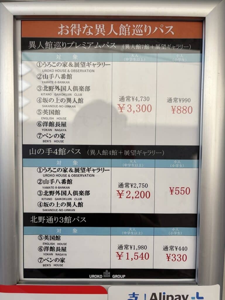 異人館巡りパスを使うと、人気の異人館をお得に巡ることができます。 開運スポットを効率よく巡りたい方には、 ①坂の上の異人館 → ②山手八番館 → ③うろこの家&展望ギャラリーの順番がおすすめ。