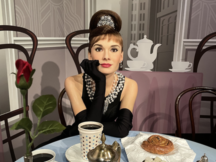 「ティファニーで朝食を」のワンシーンを再現したオードリーヘップバーンと並んで撮影すれば、一気に女優気分。