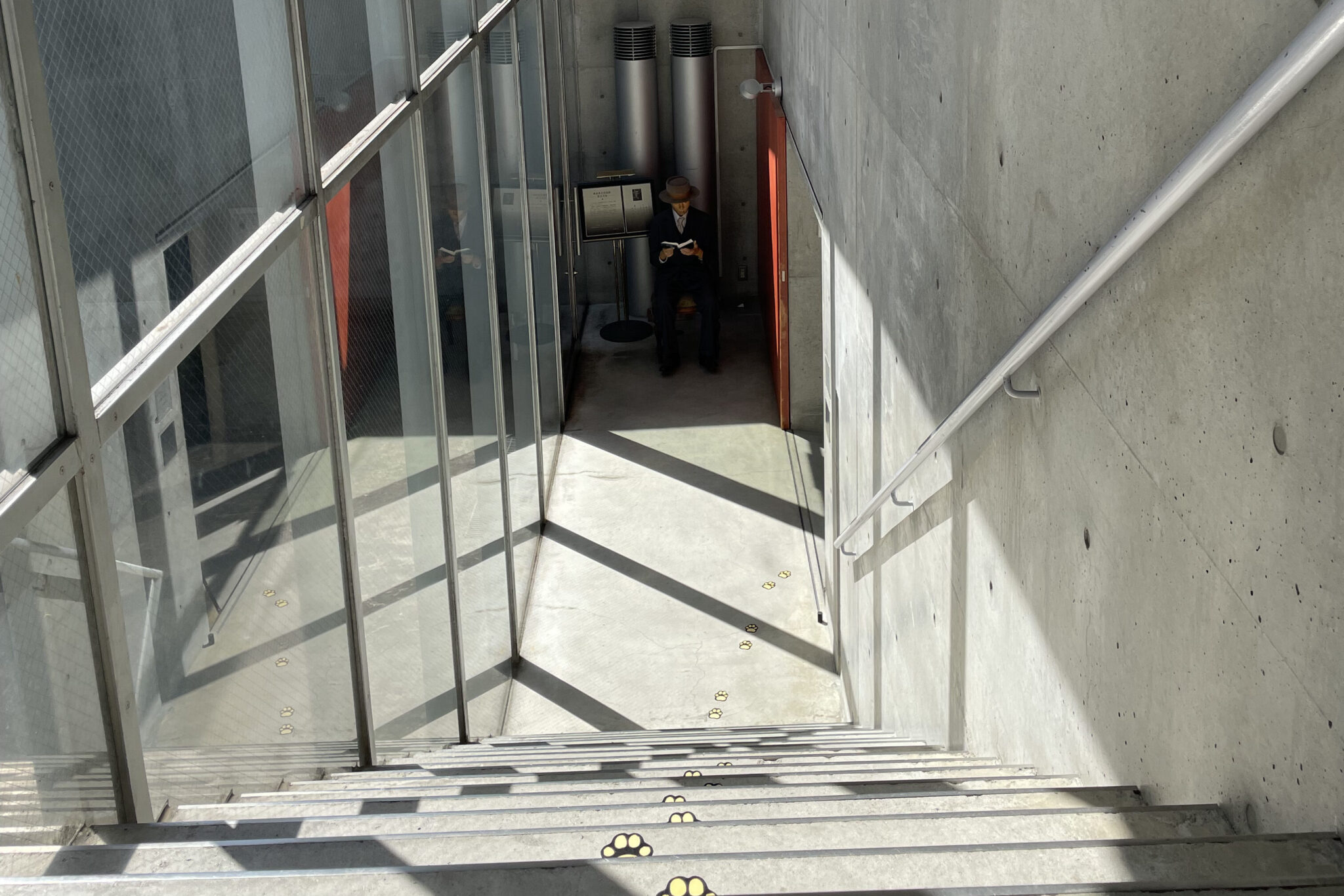 ちょこんと座る人形に「えっ!?」と驚くかも?でもご安心を。南吉の人形でした😊