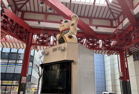 大きな招き猫が鎮座する「大須商店街ふれあい広場」に出ました!