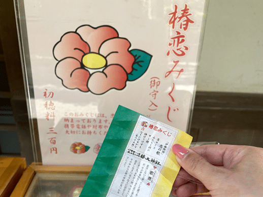 椿大神社で人気のおみくじの一つが「椿恋(つばきこい)みくじ」。