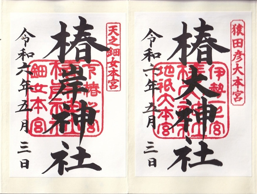 右側が椿大神社の御朱印、左側が椿岸神社の御朱印。